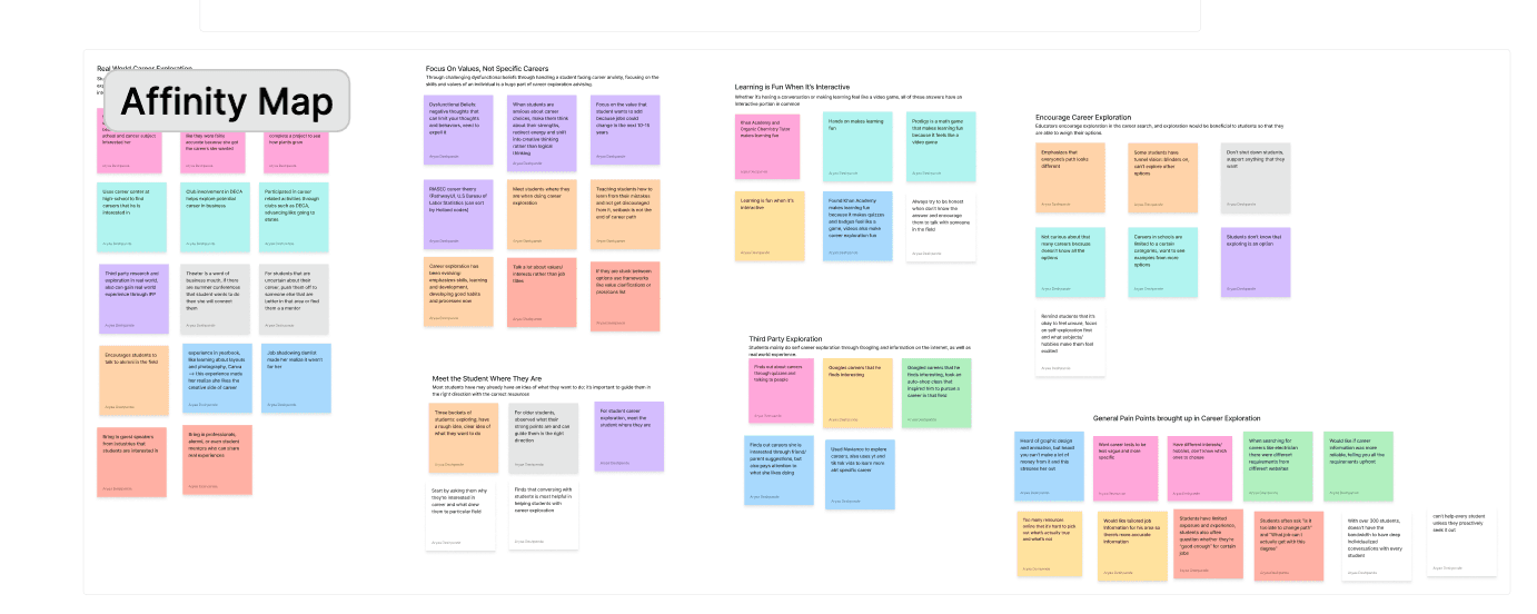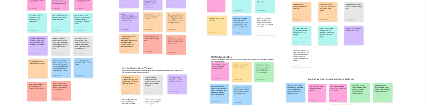 My design partner and I interviewed five high school students and five educators to understand the challenges that both groups face in career exploration. With limited funding for participant recruitment, we leveraged our network, and my manager also put out a Facebook ad to reach other educators.