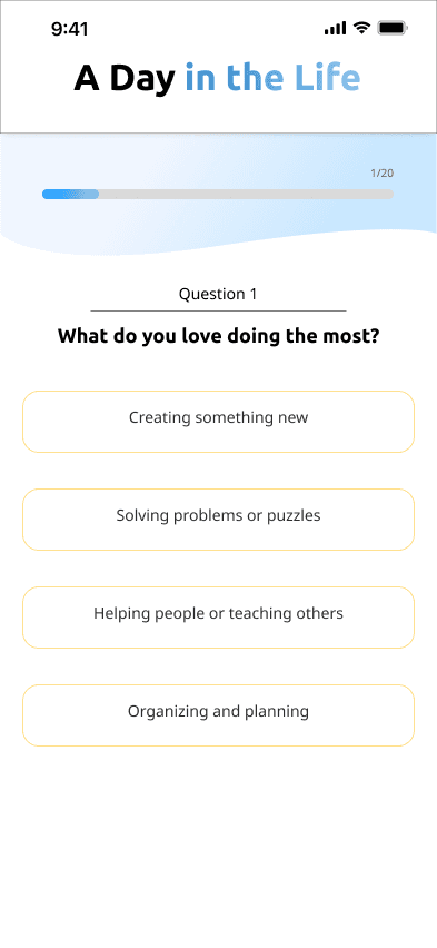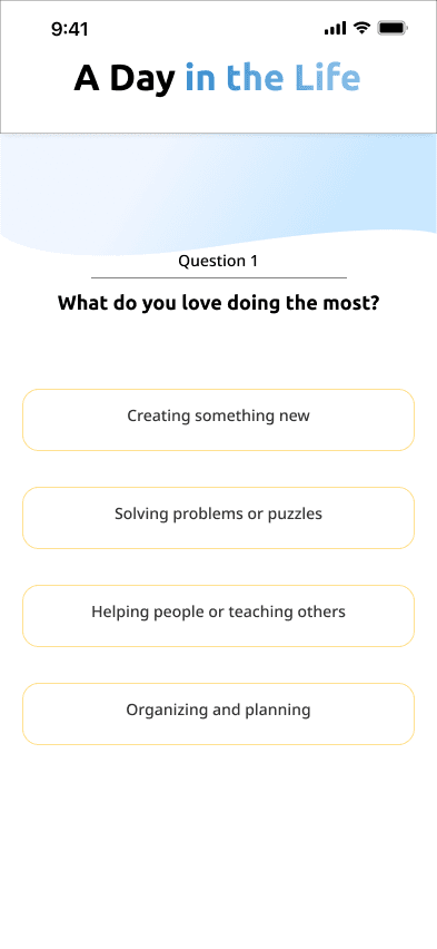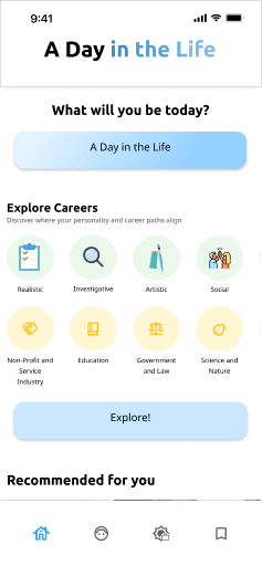 To help address this gap, my manager hired me and another designer to create a gamified app that enables high schoolers to explore and discover careers on their own.